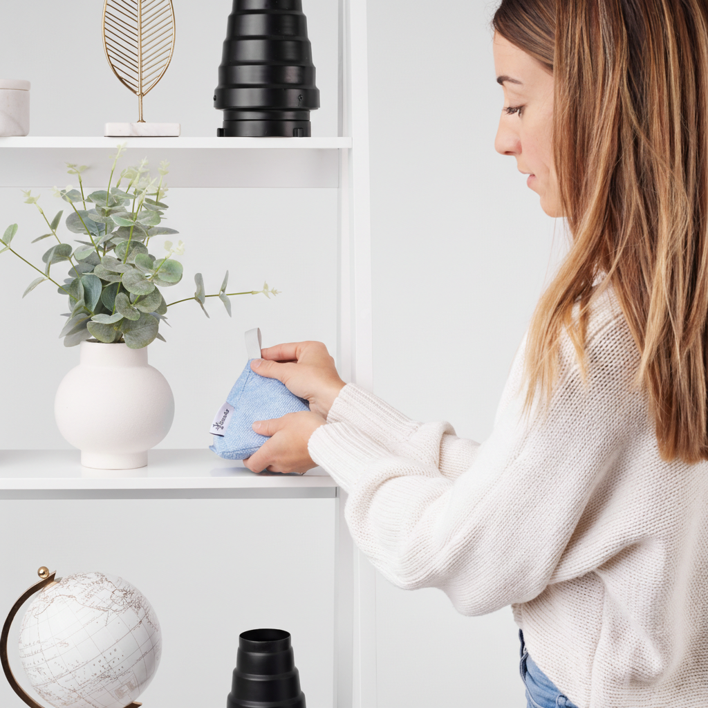 The charcoal is crushed and sealed in breathable linen or jute bags that look beautiful and work hard to purify your air.